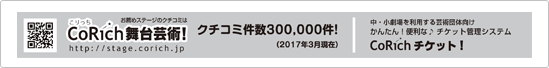 ・CoRich舞台芸術!TOPページに掲出されるチラシ広告(有料)を申し込めば、CoRichへのプロモーション協力は任意となります。詳しくは「チラシ広告」をご覧ください。